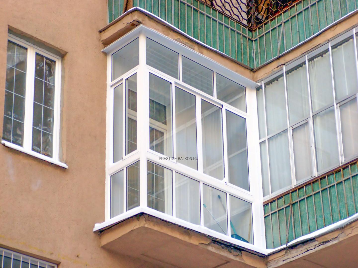 Французское остекление балкона пластиковыми окнами с фигурными ограждениями в Люберцах