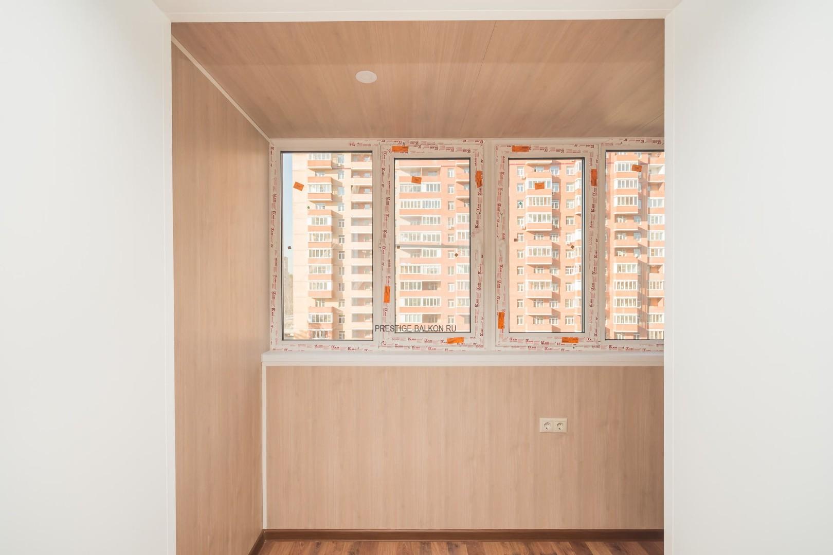 Работа "под ключ" - остекление, утепление и отделка балкона немецким профилем KBE Expert 70 мм с двухкамерным стеклопакетом.