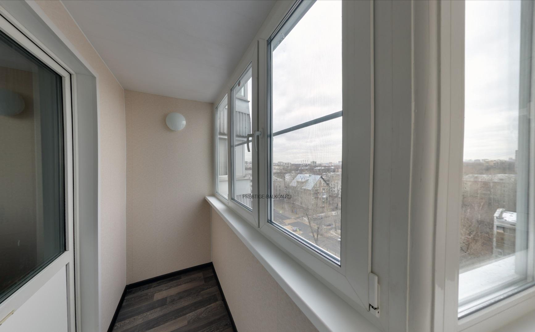 Теплое остекление балкона с утеплением и отделкой ПВХ панелями и ламинатом в Люберцах