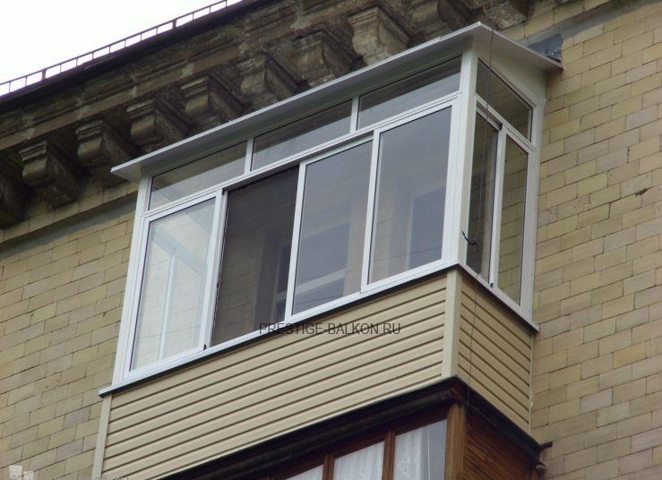 Холодное остекление балкона алюминиевыми окнами с внешней отделкой сайдингом и кровлей из профлиста